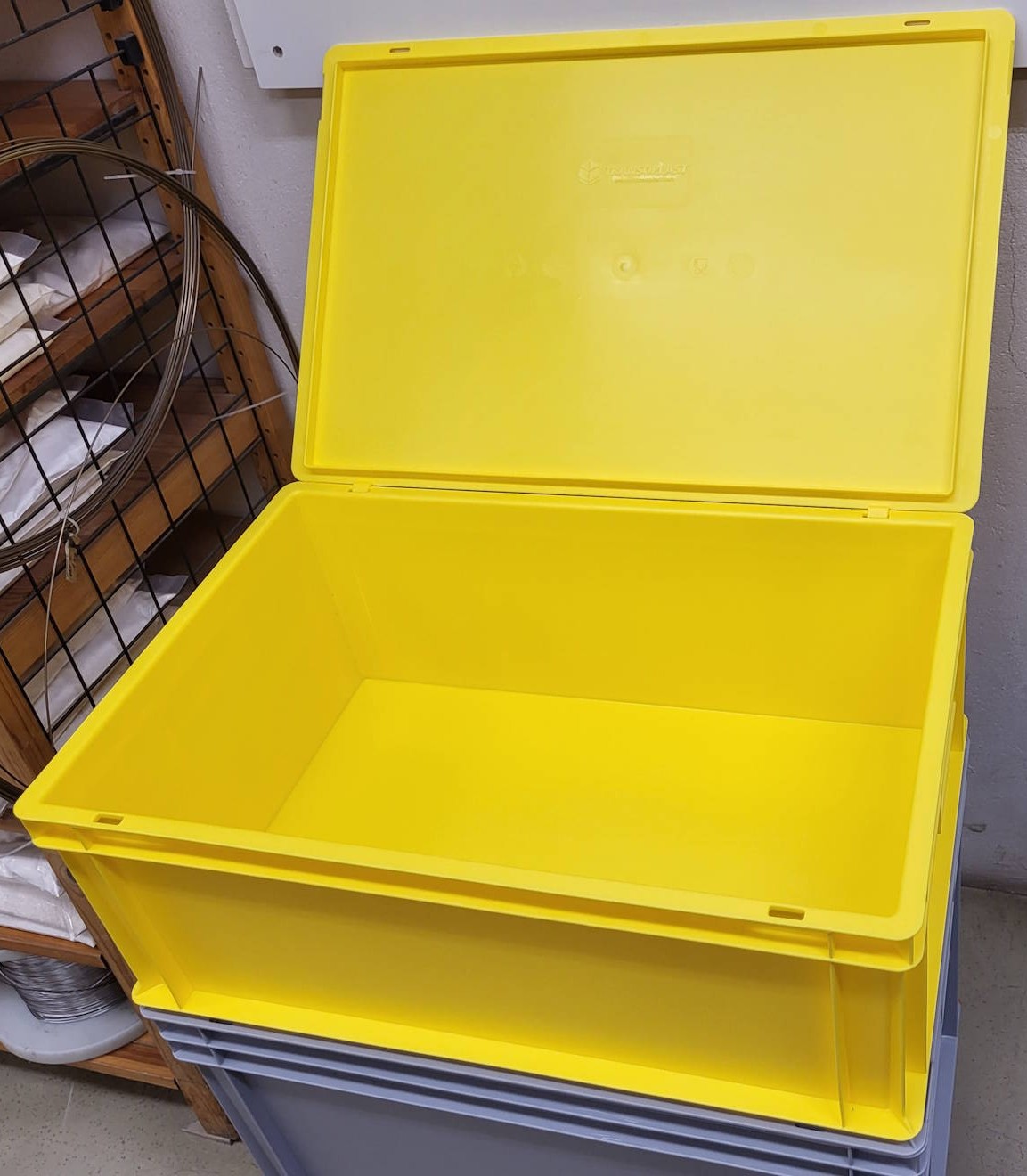 88020 | Ton- und Mehrzweckbehälter | PP - Kunststoffbehälter mit Scharnierdeckel Maße: 600 x 400 x 220 mm, gelb |