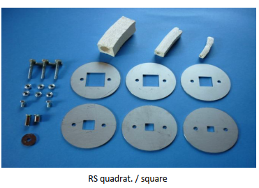57238 | Schablonensatz für Hand-Tonpresse Nr. 57238 | Rohr-Strangschablone eckig 6 Varianten, das Rohr bzw. der Strang wird aussen quadratisch